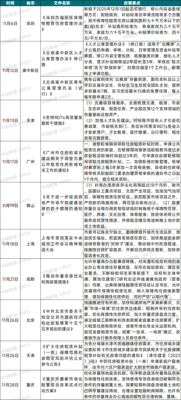 (2025年11月地方出台的住房租赁市场指导与支持政策,图源:中指研究院)